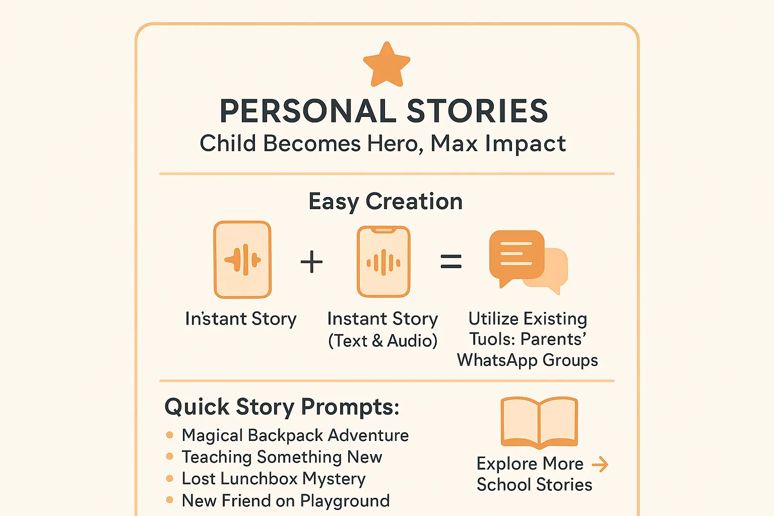 Want more inspiration? Explore more school-themed story ideas that turn first-day jitters into exciting chapters. The goal? Perfect connection, not perfect grammar. Your voice, their story. đ