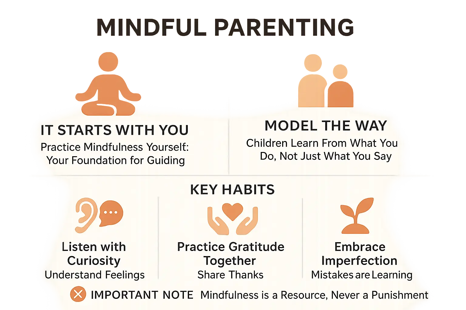 Avoid framing mindfulness as punishment. Don’t say, “Go be mindful in your room.” Practice together during transitions like bedtime or walks. 🌟 Try syncing breaths with steps while observing nature.